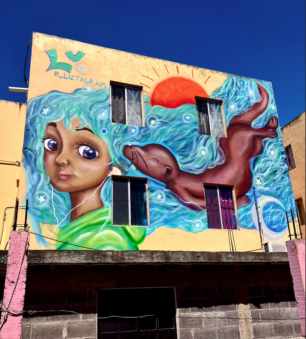 Participation in Ecos del Manglar Street Art Festival, Tampico, Tamaulipas, Mexico, 2025. Aerosol & Acrylic Paint. 50 x 40 ft.